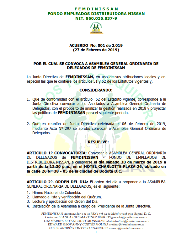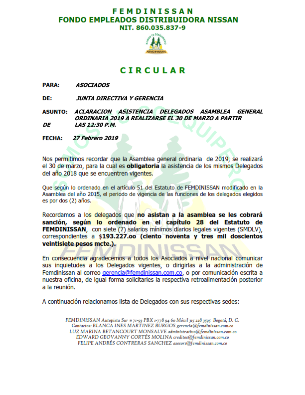 | PARA CONSULTAR SU ESTADO DE CUENTA LOS INVITAMOS A VISITAR NUESTRA PÁGINA WEB www.femdinissan.com.co |